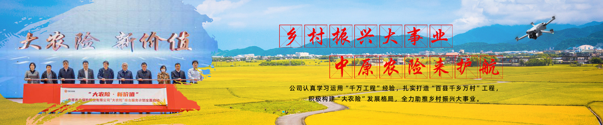 中原農險是河南省首家保險法人機構,“金融豫軍”重要成員。總部設在鄭州,注冊資本40億元。公司立足中原、面向全國,以促進國家糧食安全生產、保障“三農”持續發展為己任,服務鄉村振興和農業農村現代化,秉承“規范運作、創新驅動、貼心服務、專業發展”的經營理念,做中國最懂“三農”的保險公司,打造成為客戶信賴、社會尊重、政府滿意、員工幸福的保險企業。